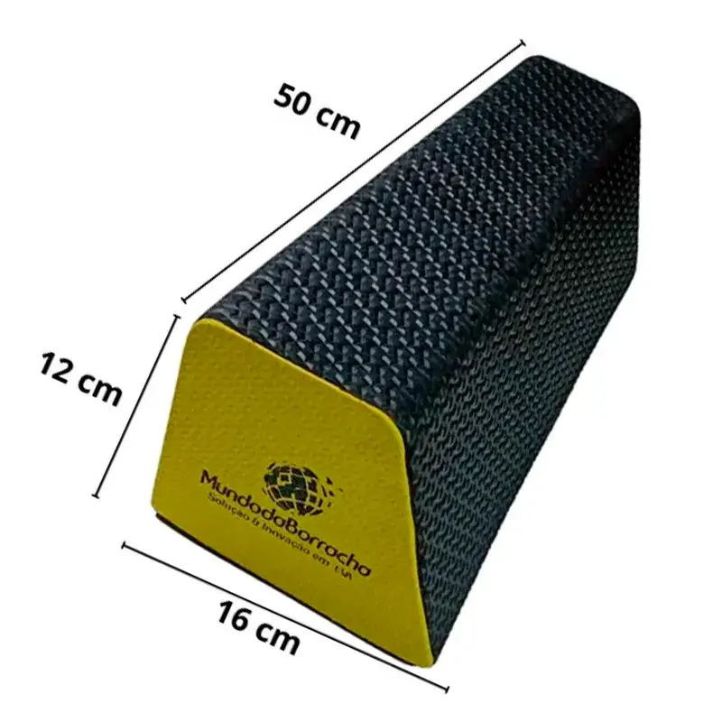 Limitador de Vaga em EVA, ideal para garagens e estacionamentos. Evita avanço excessivo do veículo, com fixação simples por cola de contato. Disponível nos tamanhos grande (50 cm) e pequeno (33 cm).