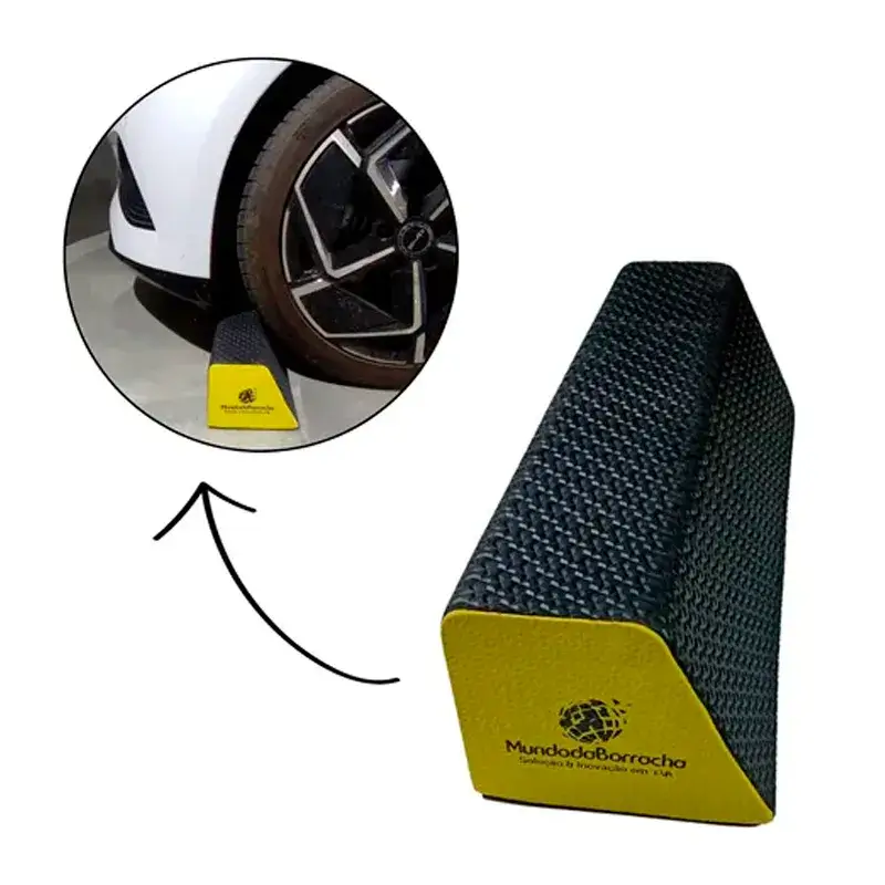 Fabricado 100% em EVA, é resistente, leve, durável e possui excelente absorção de impacto. Não danifica os pneus e pode ser fixado facilmente com cola de contato, sem necessidade de perfurar o piso, sendo ideal para condomínios, residências e garagens cobertas ou descobertas.
