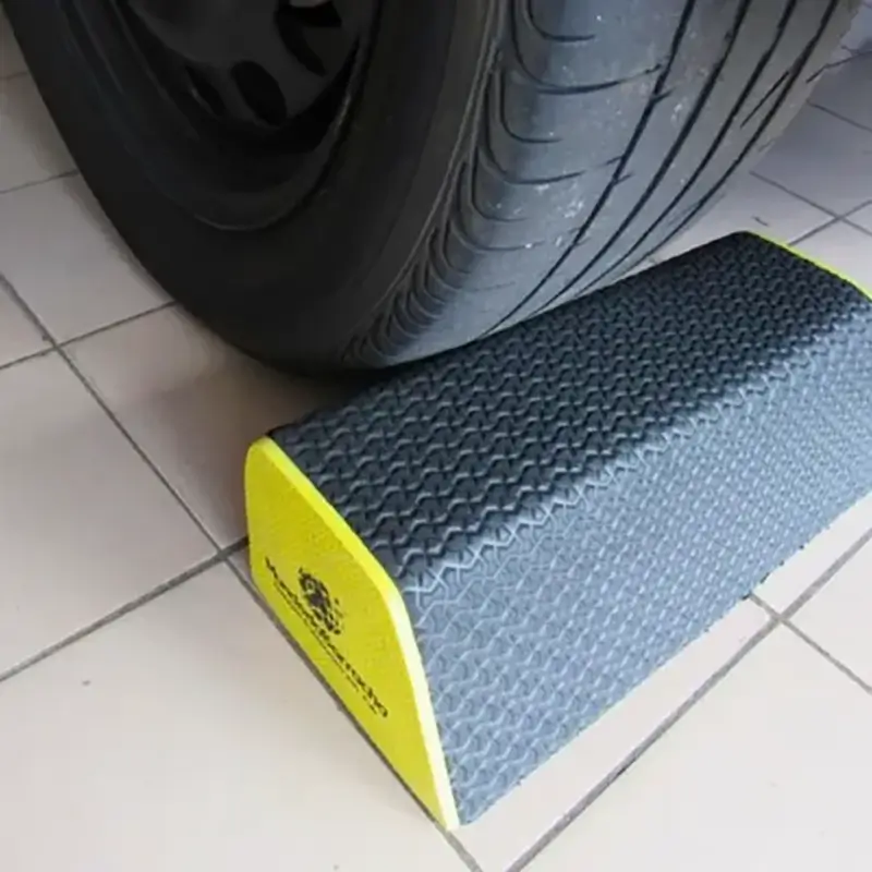 Fabricado 100% em EVA, é resistente, leve, durável e possui excelente absorção de impacto. Não danifica os pneus e pode ser fixado facilmente com cola de contato, sem necessidade de perfurar o piso, sendo ideal para condomínios, residências e garagens cobertas ou descobertas.