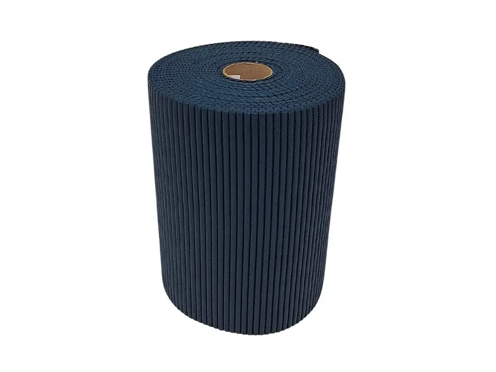 Passadeira azul antiderrapante, com 43 cm de largura. Vendida por metro linear. Flexível, resistente e lavável.